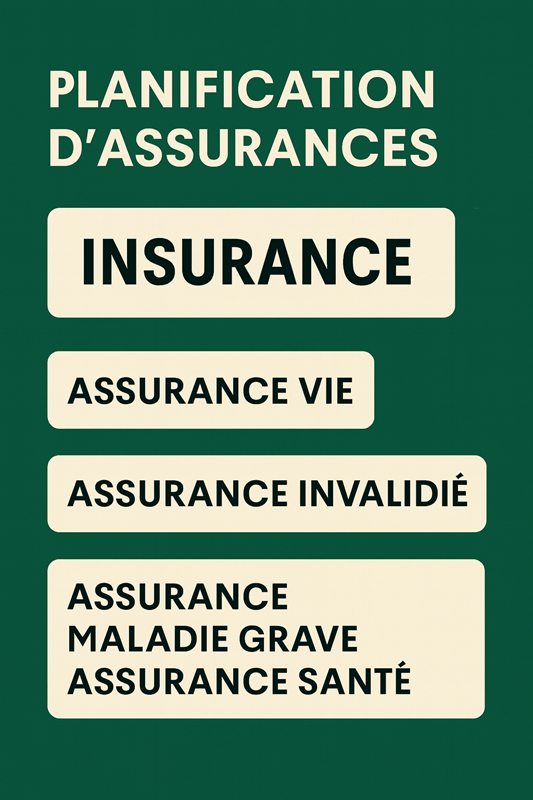 - Assurance vie : Offre un soutien financier à votre famille à votre décès. Elle peutcouvrir les dépensescourantes, les dettes et les frais d’éducation de vos enfants. Que cesoitune assurance temporaire pour des dettes à court termecommeunehypothèqueouune solution permanente pour réduirel’impact fiscal au décès, l’assurance vie devraitêtreunepartieintégrante de votre plan.